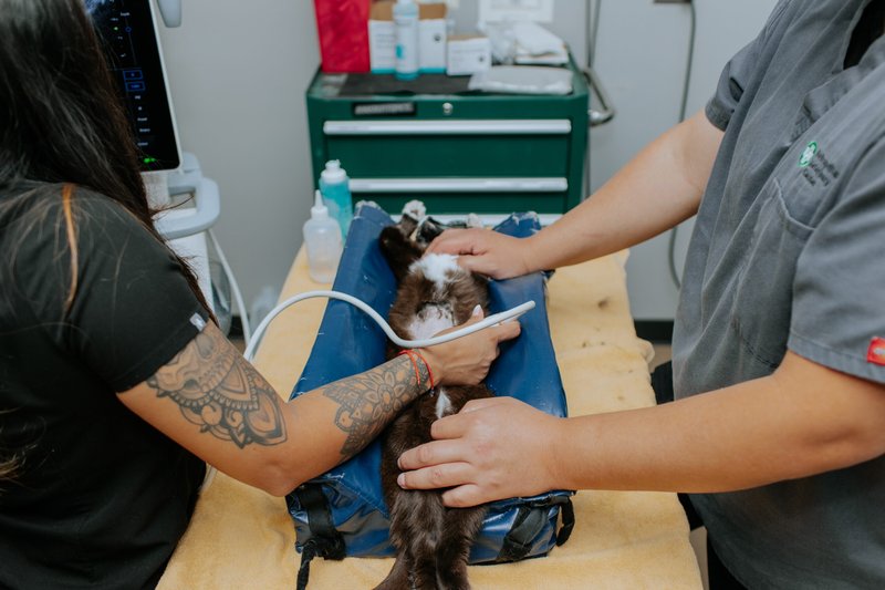 Ultrasound is a non-invasive imaging tool that allows us to view your pet’s internal organs in real time. It is commonly used to evaluate abdominal structures such as the liver, kidneys, bladder, intestines, and spleen. In other situations, ultrasound may also be used to assess the heart or look for fluid within the chest or abdomen. This imaging tool provides detailed information about soft tissues and is often used alongside other diagnostics to help guide diagnosis and treatment planning.